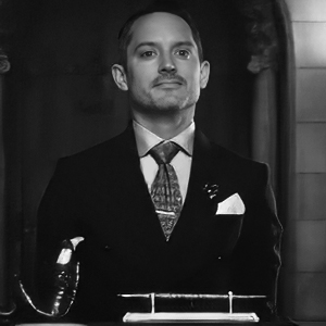 Elijah is suited well in this period piece with the look of a classic actor from the era in which the film is set. As opposed to Dylan, there’s not much known about John Brinnin. However, the way Elijah portrays the Harvard scholar makes us believe the literary critic to be reserved but holds a powerful and respectful status. We struggle with John every step of the way as he wants to be a colleague and advocate but instead is diminished to a caretaker and scapegoat. Despite all this John is still an admirer. In one scene he watches Thomas recite his poem “And Death Shall Have No Dominion” to the Yale big wigs. Dylan fumbles at first then settles in. The camera closes in on Elijah and you can feel the admiration in his eyes while the others show little sign of validation. Elijah loves the English language and its proper use so this film must have been a treat to work on. He delivers his lines just as eloquently as Celyn.